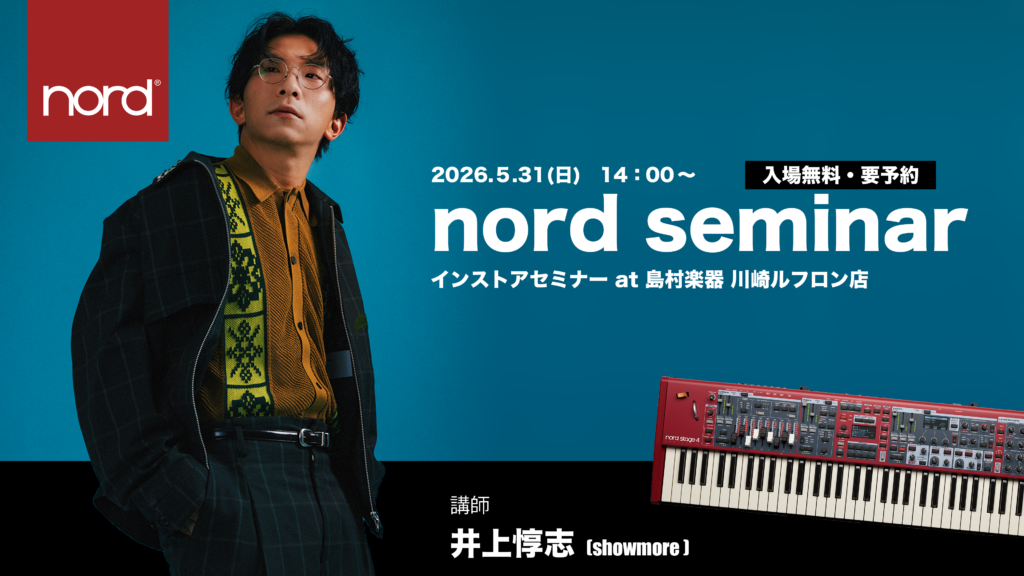 本セミナーでは、Nordを愛用するアーティストを迎え、演奏デモンストレーションを交えながらブランドの魅力や製品の奥深さを解説。カタログや動画だけでは伝わらない、音の立体感や表現力、ライブ現場での実用性を体感いただけます。