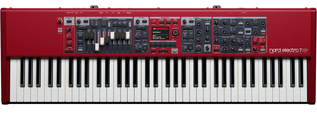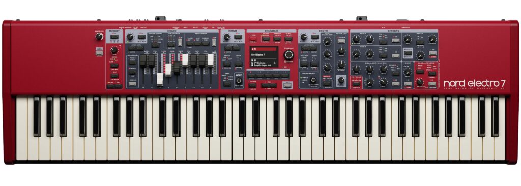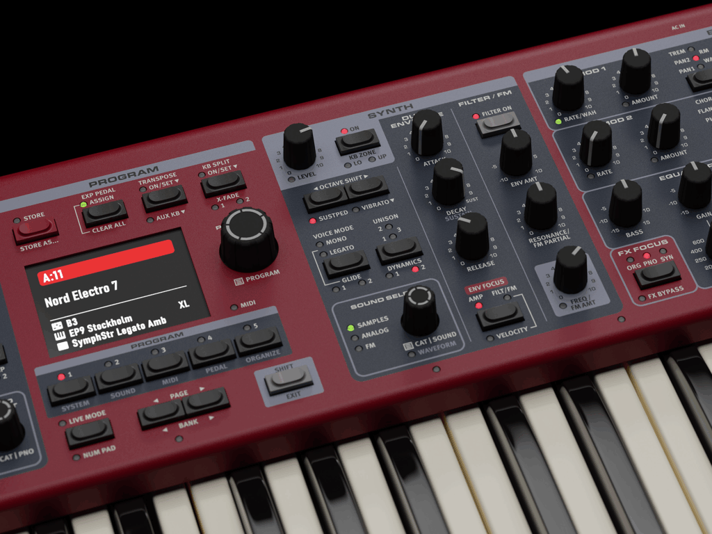 Nord Electro 7 は、強化されたシンセ・セクション、各セクション専用エフェクト、高解像度カラーディスプレイを備え洗練されたパネルデザインにより、Electro シリーズをさらなる次元へと進化させました。