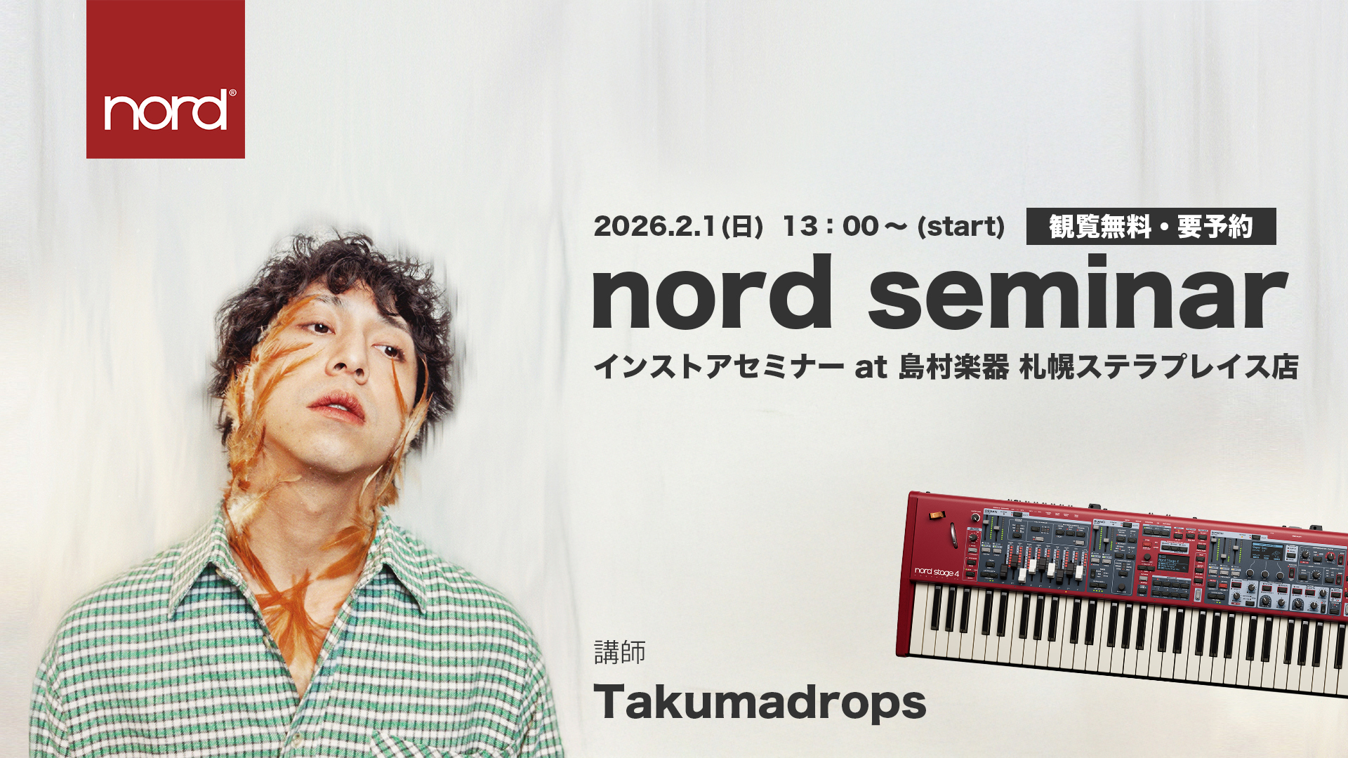 講師にTakumadrops氏を迎えNord の魅力とそのポテンシャルを体験いただけるインストアセミナーを開催いたします。